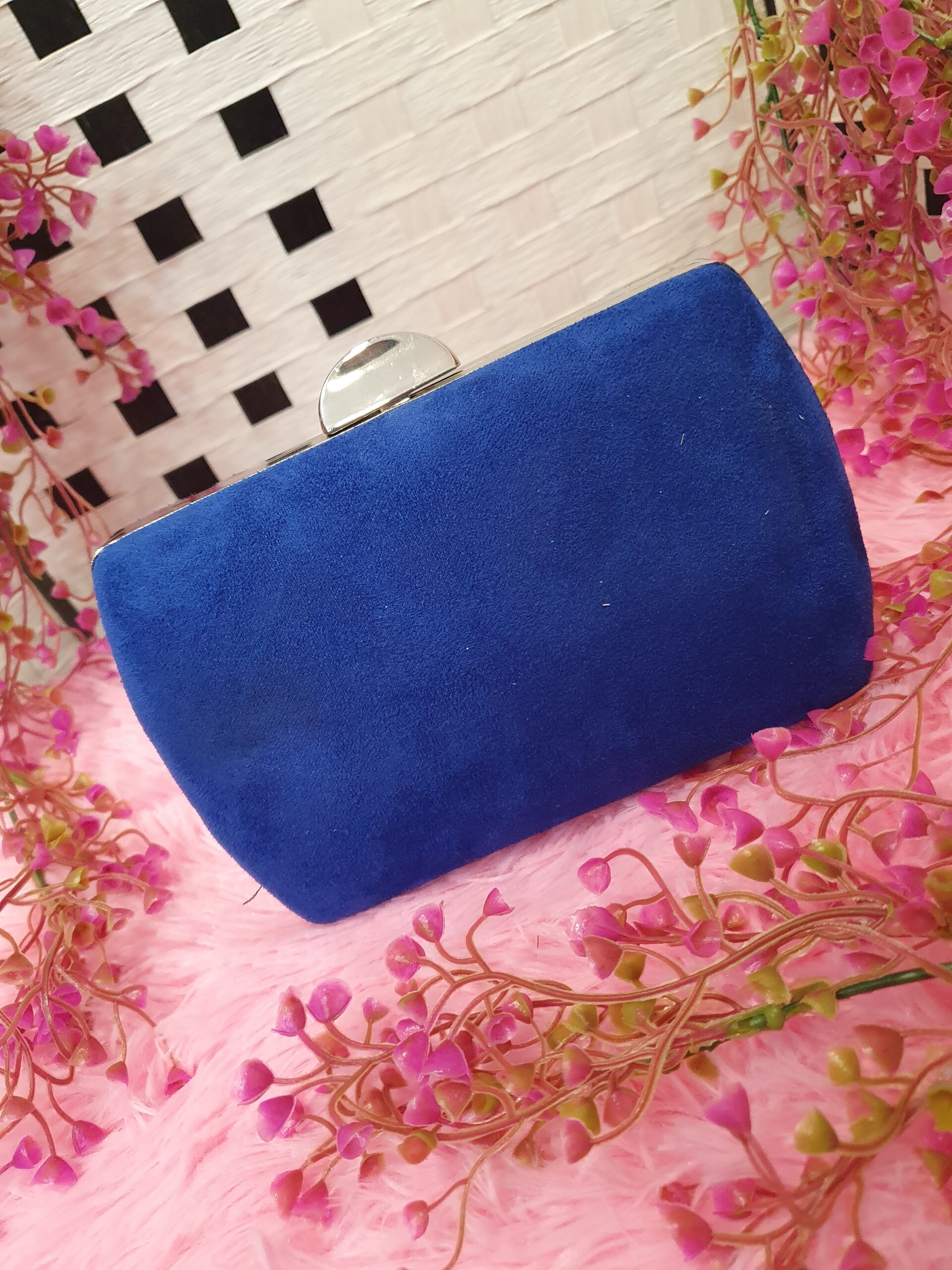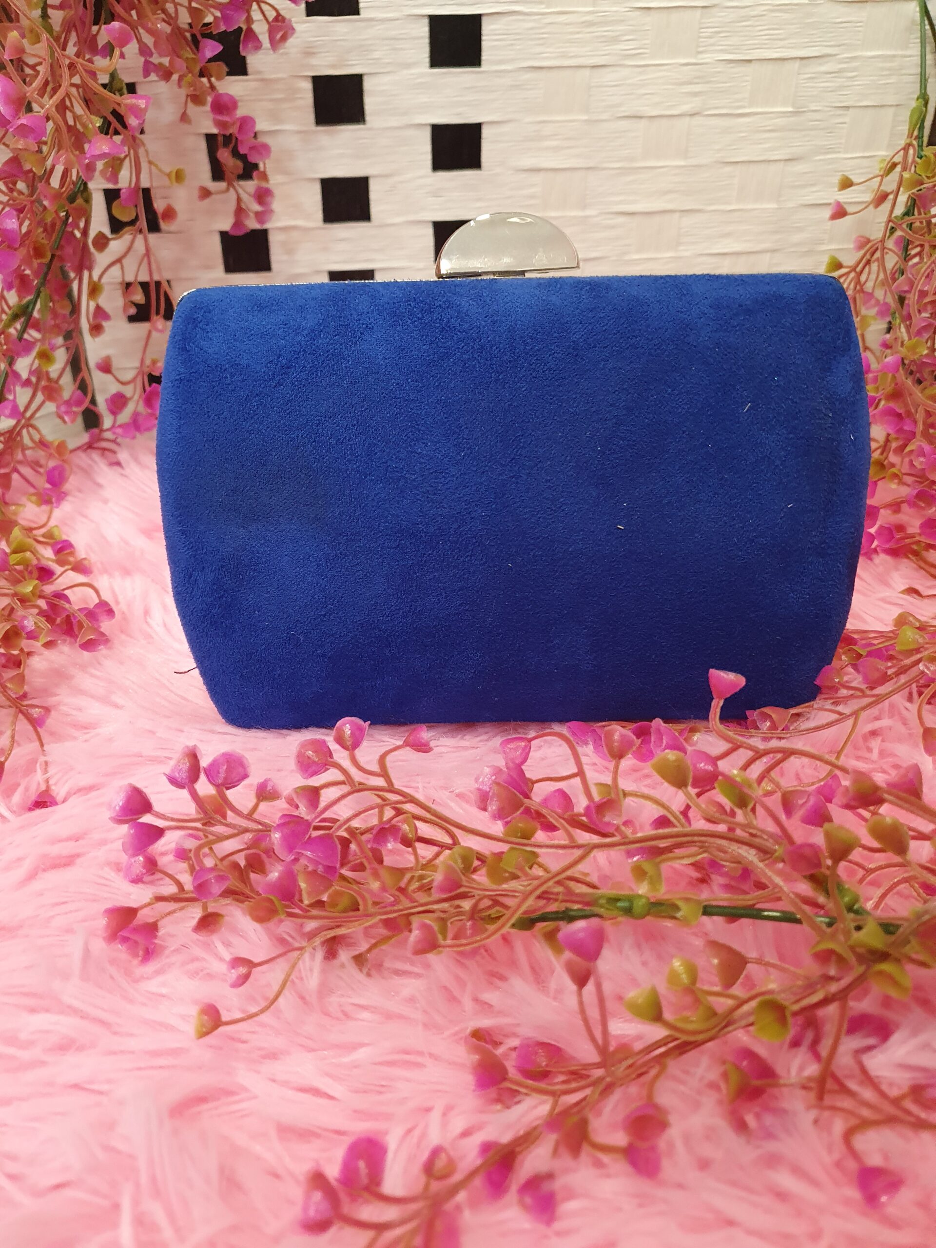 Bolso confeccionado en tejido de antelina con terminaciones en plata. Lleva cadena adicional para poder colgar.