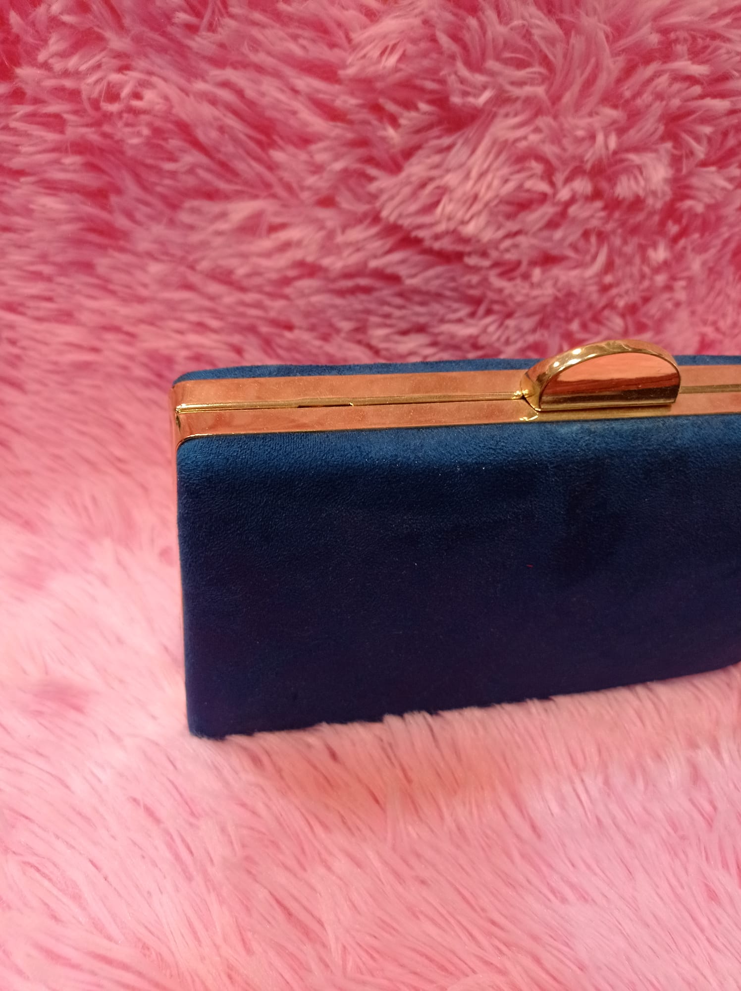 Bolso confeccionado en antelina con terminaciones en dorado. Lleva cadena adicional para poder colgar.