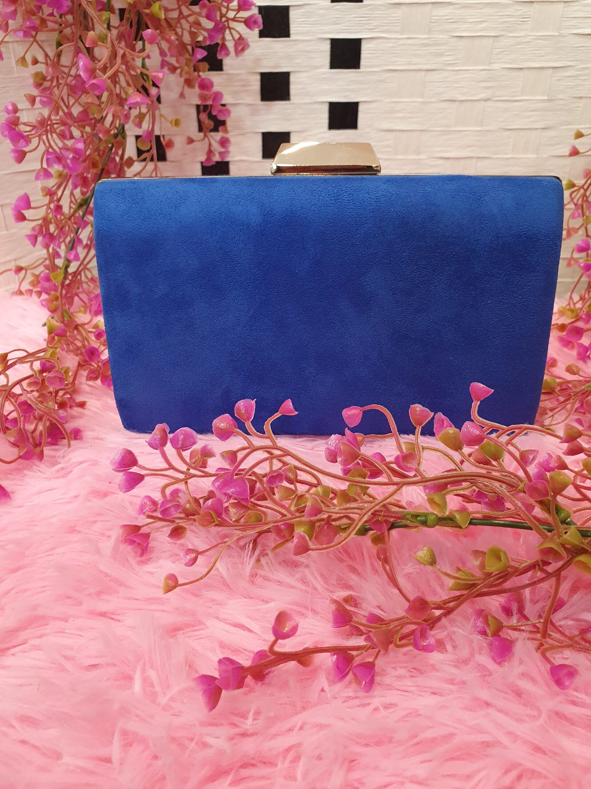 Bolso confeccionado en tejido de antelina con terminaciones en dorado. Lleva cadena adicional para poder colgar.