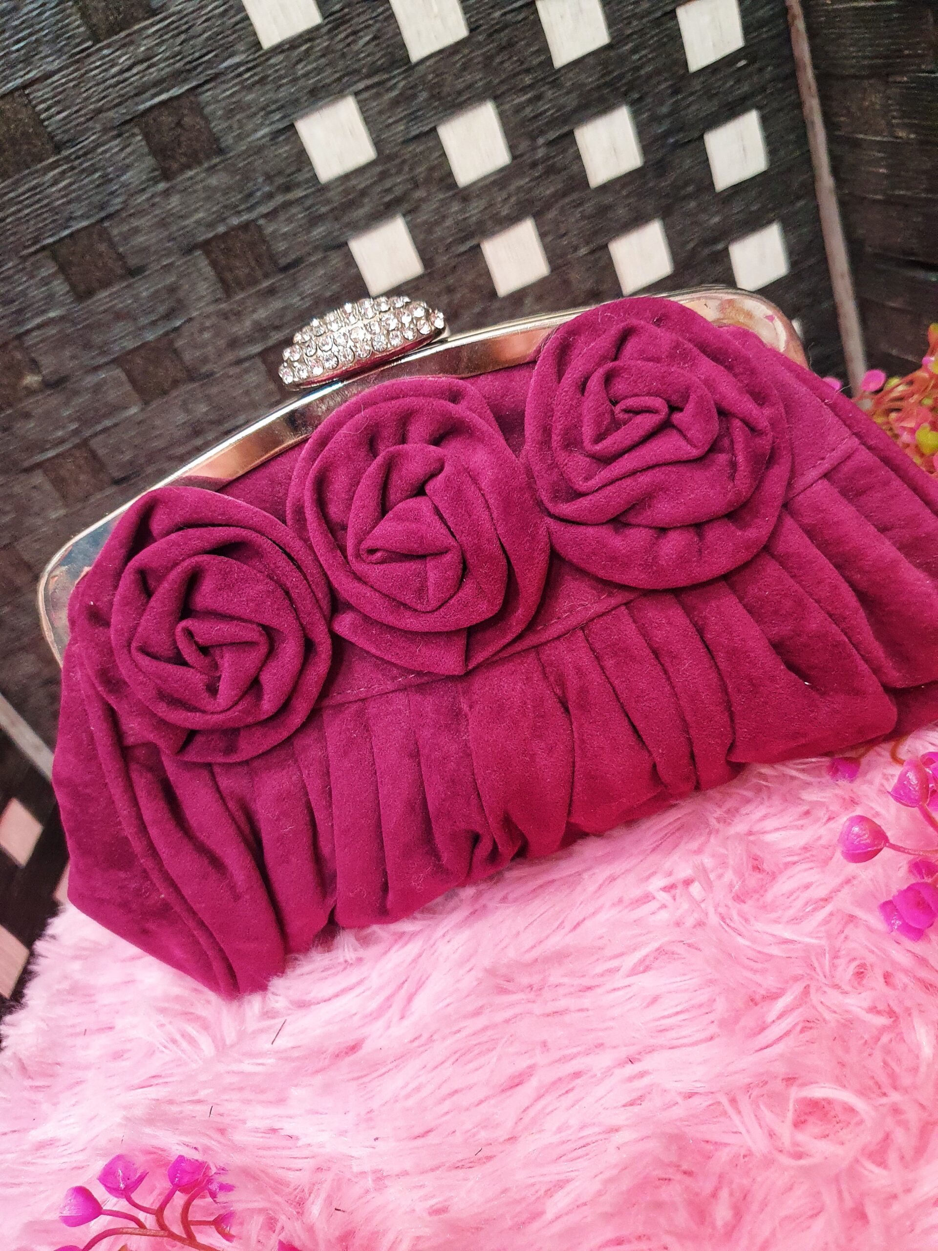 Bolso de fiesta confeccionado en tejido de antelina con terminaciones en plata . Lleva asa adicional para colgar de bandolera.