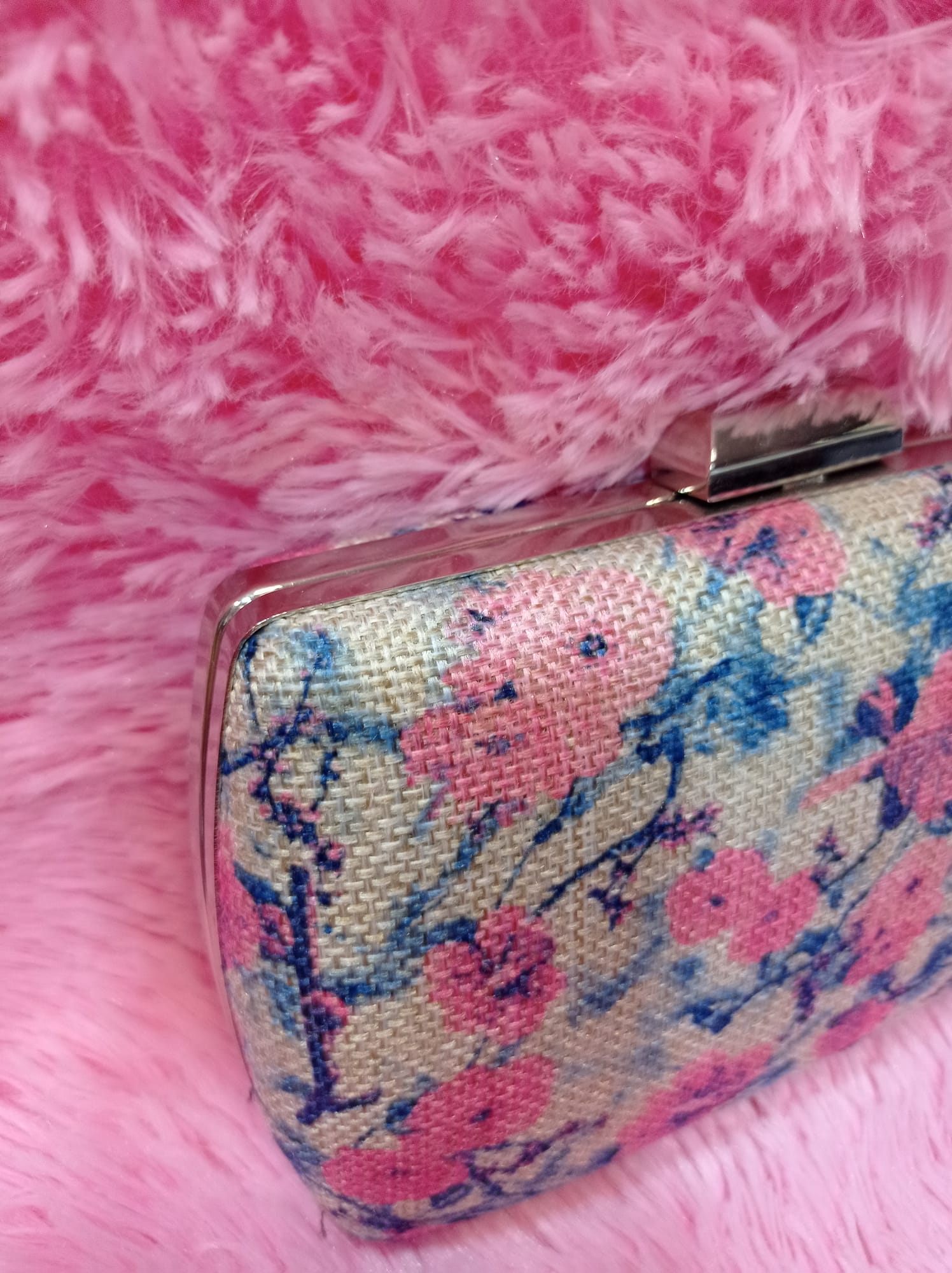 Este bolso de fiesta es el complemento perfecto para tu look de invitada. Confeccionado en tejido estampado de flores en tonos rosa y azul, su diseño es elegante y sofisticado. Además, incluye una cadena adicional para que puedas llevarlo colgado y disfrutar de la fiesta con total comodidad.