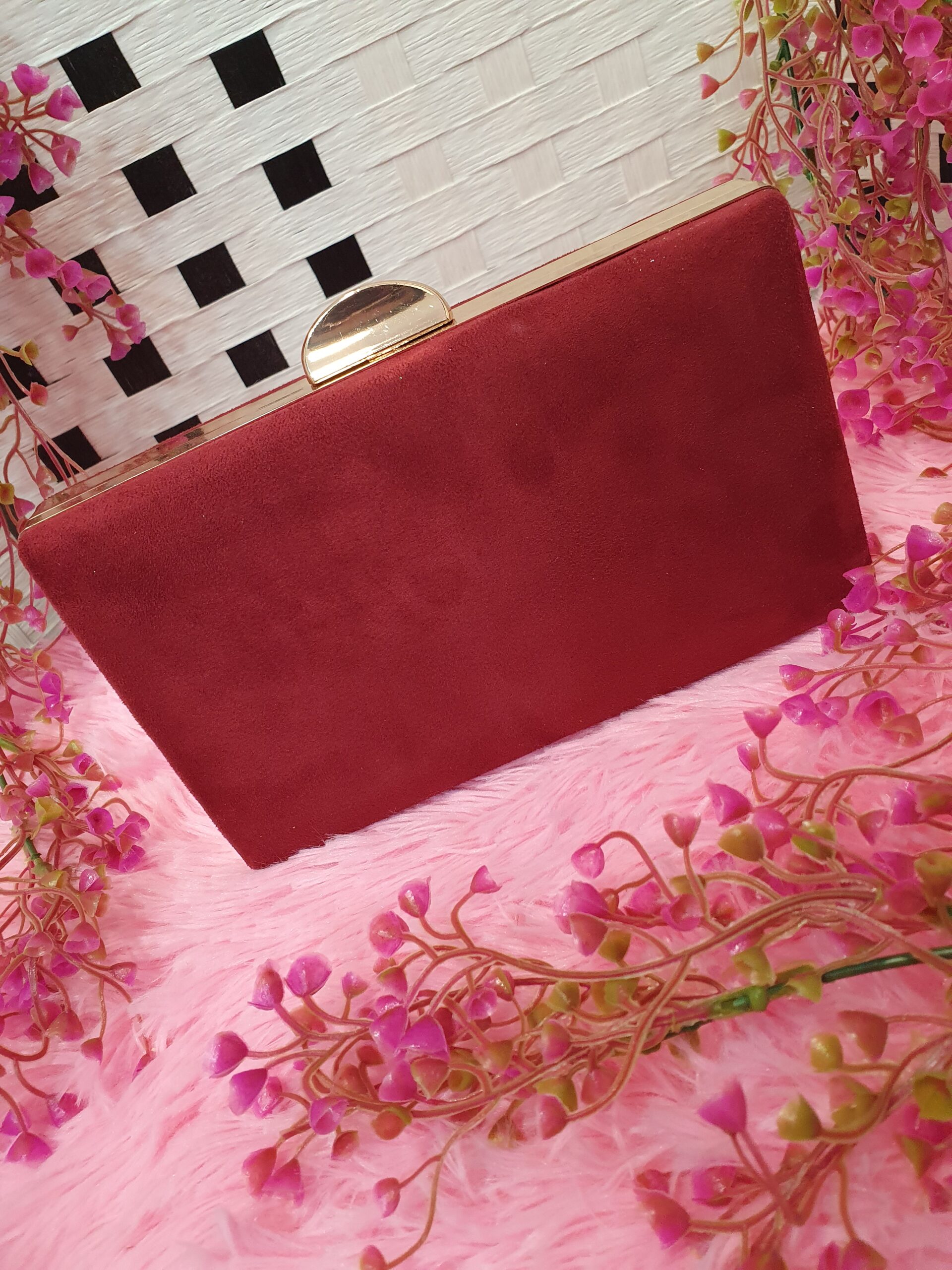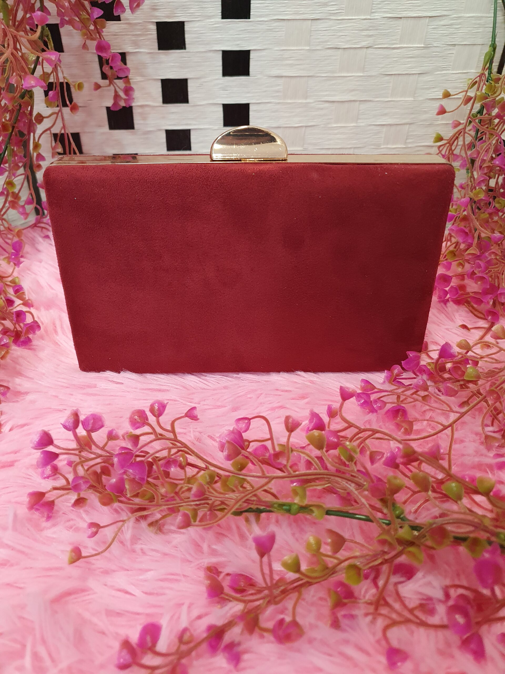 Bolso de fiesta confeccionado en tejido de antelina con terminaciones en dorado . Lleva asa adicional para colgar de bandolera.