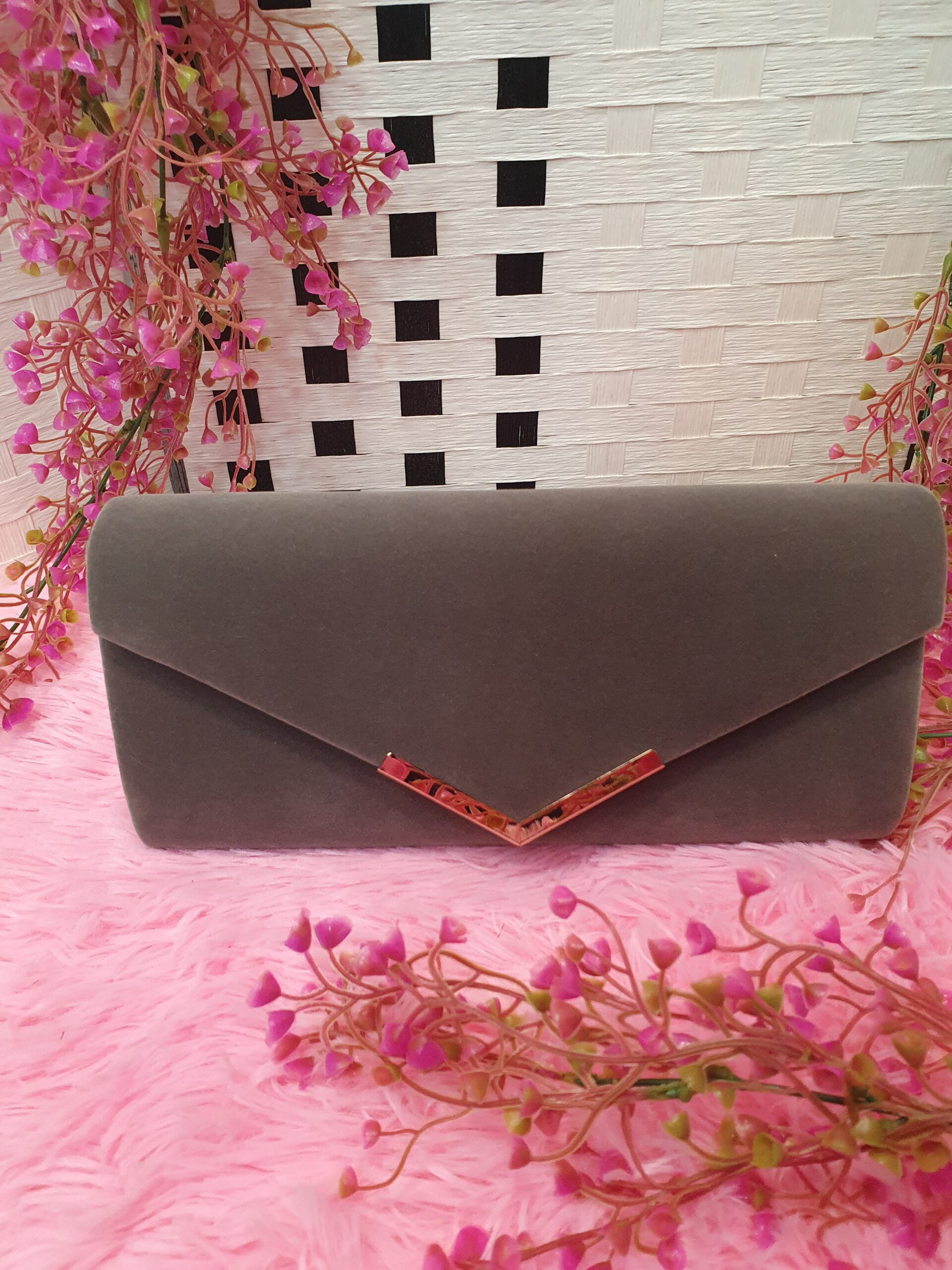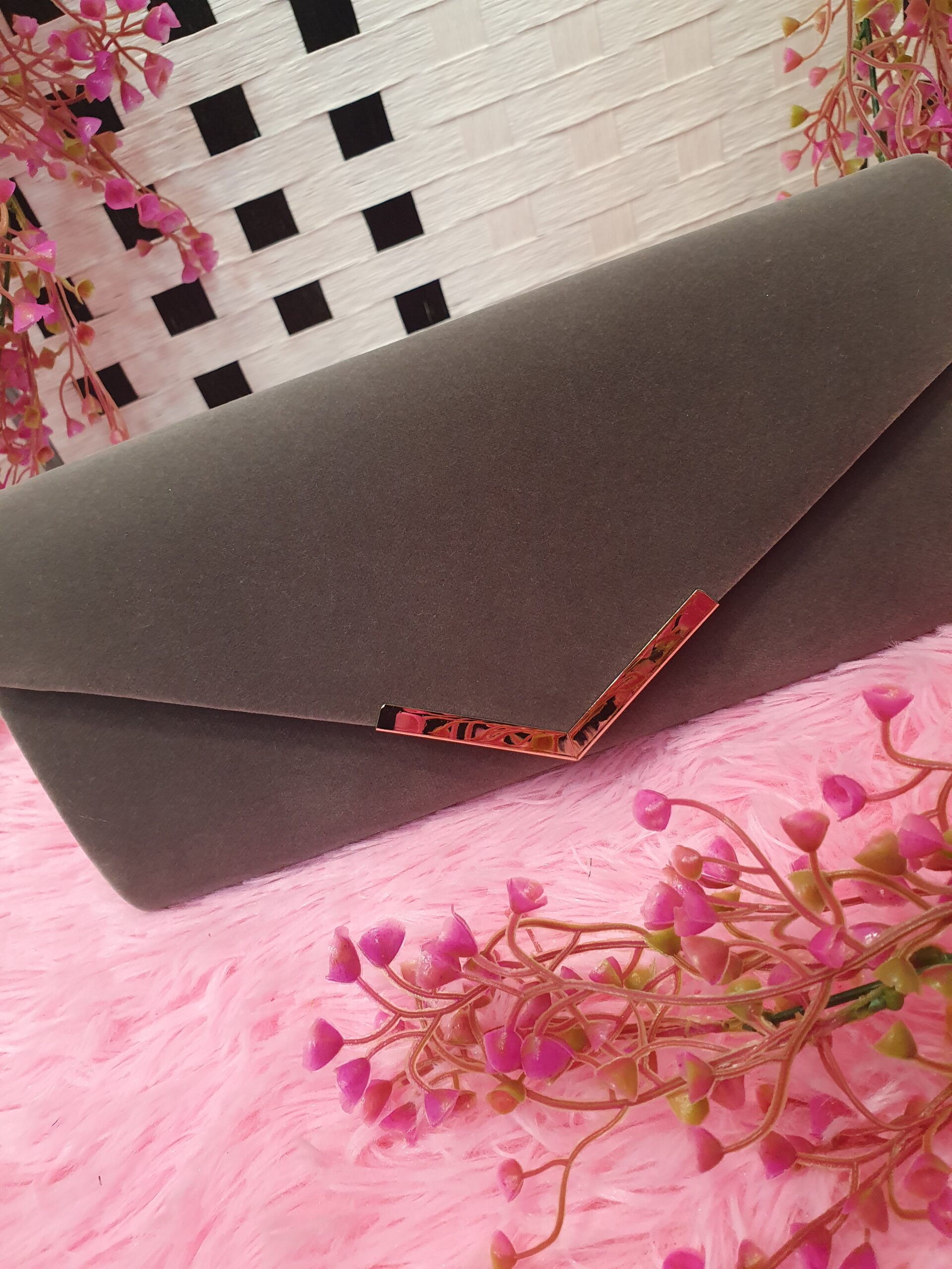 Bolso confeccionado en tejido de terciopelo con terminaciones en dorado. Lleva cadena adicional para poder colgar.