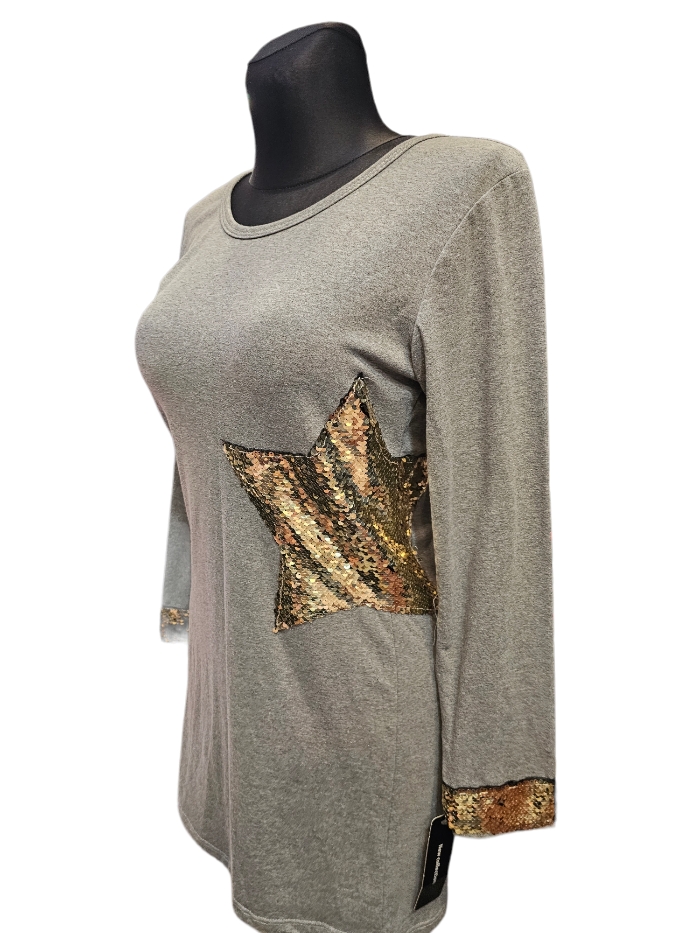 Camiseta de corte larguito con detalle de glitter magico en lateral y mangas. Ideal para combinar con leggings . Talla única correspondiente a s-m.