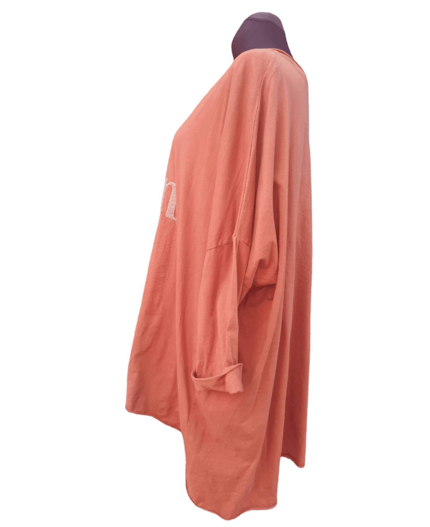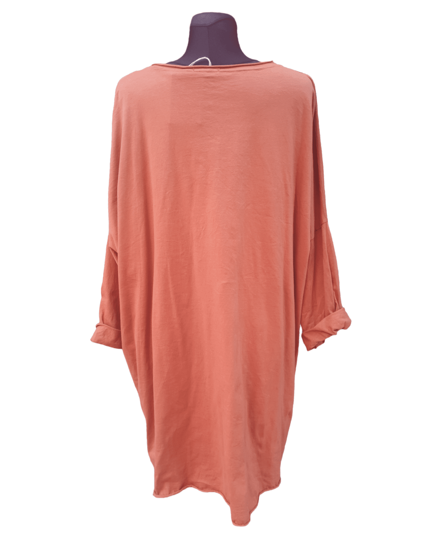 Camiseta oversize larga confeccionada en punto .Talla única adaptable desde s hasta xxl.
